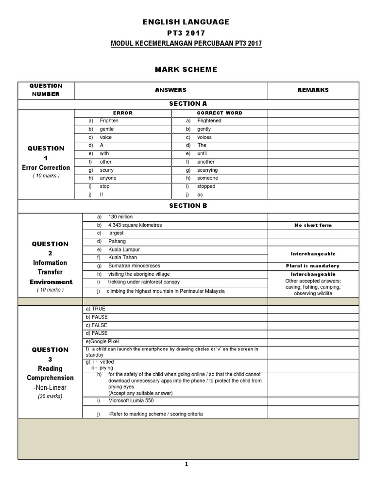 Related : Pt3 English Essay Marking Scheme : Skema section a 1 between among 2 which who 3 users user 4 hers her 5 is are 6 under on 7 an a 8 senses sense 9 allows 3..