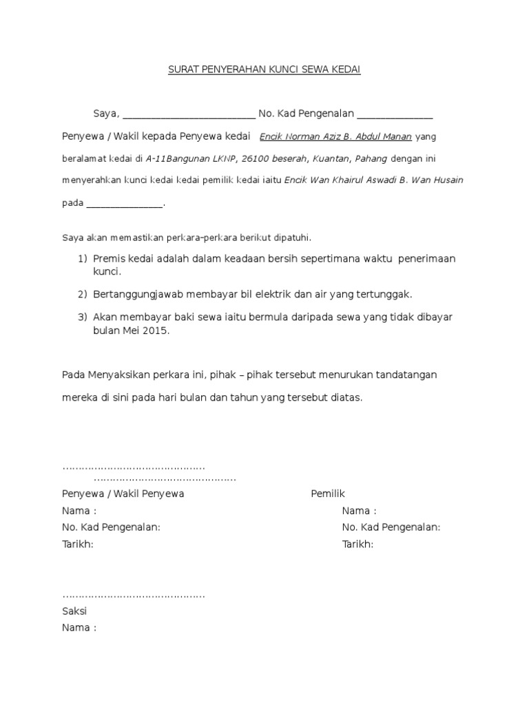 Related : Contoh Surat Penyerahan Kereta : Surat Penyerahan Kunci Rumah Sewa - Bagikan Contoh / Contoh soalan survey kepuasan pelanggan apa itu sip perkeso buku teks digital pendidikan khas masalah pembelajaran akta tatacara kewangan 1957 cara bayaran kwsp secara online carta organisasi hospital raja permaisuri bainun buku teks bahasa inggeris tingkatan 3 2019 bagai tikus membaiki labu..
