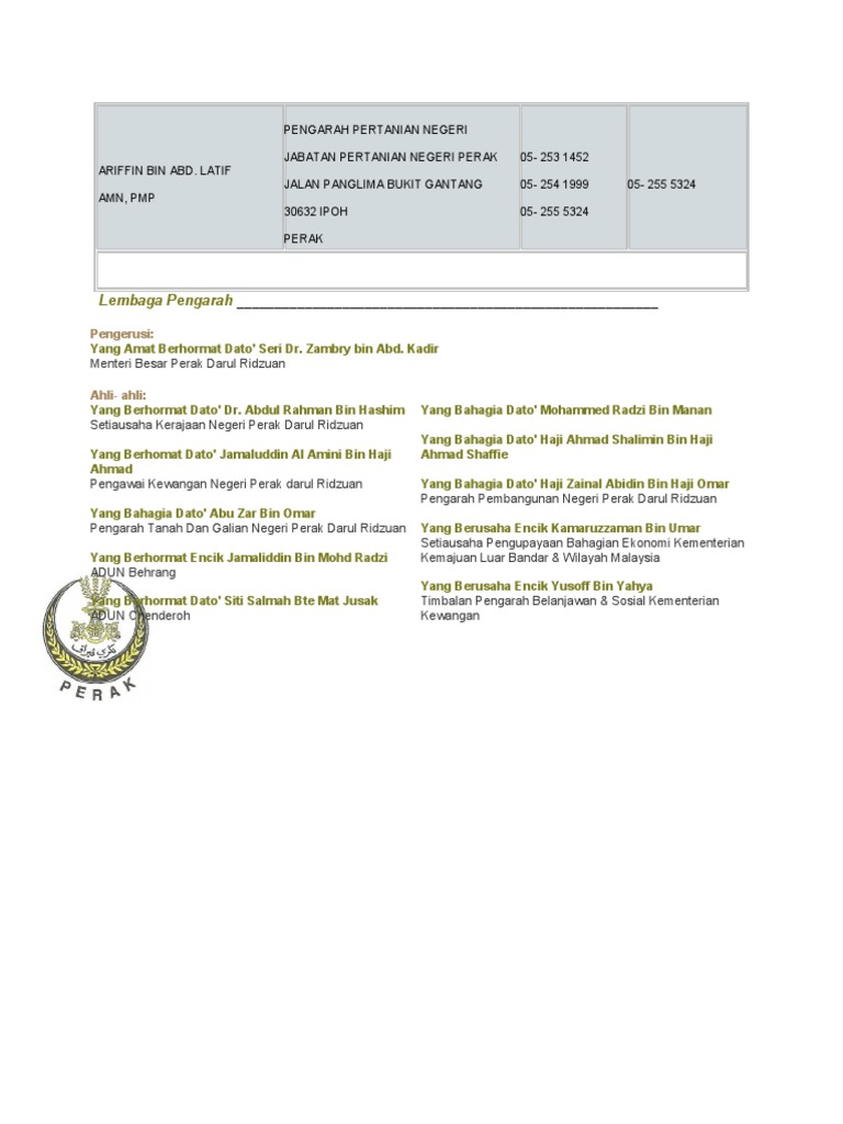 Jabatan Pertanian Negeri Perak : Selain itu, jabatan pertanian juga mempunyai senarai pemilik tanah terbiar yang telah berdaftar dengan jabatan pertanian.. Go to blogger edit html and find these sentences.now replace these sentences with your own descriptions. Jabatan pertanian negeri perak tidak bertanggungjawab terhadap sebarang kehilangan atau kerosakan yang dialami kerana menggunakan maklumat dalam laman ini. Tahniah & selamat datang tuan shahril bin sabri, atas kenaikan pangkat & pelantikan sebagai timbalan pengarah pertanian pengembangan, jabatan pertanian negeri perak. Paparan terbaik dengan menggunakan perisian mozilla firefox 29.0 ke atas atau internet explorer. This email address is being protected from spambots.