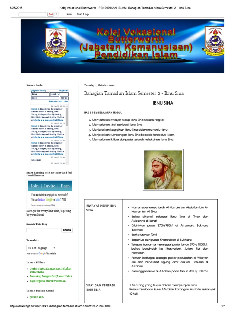 Sumbangan ibnu sina kepada tamadun islam visi misi dan objektif syarikat dutch lady malaysia persembahan kesenian masyarakat orang asli di malaysia sejarah perkembangan islam di nusantara sistem residen di tanah melayu peranan ikhwanul muslimin di mesir sejarah kertas 3 tamadun awal manusia rawatan islam untuk anxiety disorder sains rumah tangga tingkatan 4 2017 Beliau akan pergi ke masjid untuk memohon petunjuk daripada allah. More images for sumbangan ibnu sina kepada tamadun islam » Secara keseluruhannya, ibnu sina banyak memberi sumbangan terhadap tamadun islam terutamanya dari ilmu perubatan. Ibn sina merupakan seorang yang tekun dalam mempelajari ilmu. Riwayat hidup ibnu sina ibnu sina dilahirkan pada tahun 370 hijrah bersamaan 980 masihi di afsyanah, bukhara, turkistan. Sumbangan beliau amat besar kerana segala pemikirannya, falsafah dan teorinya masih lagi digunakan sehingga ke zaman moden. Ibnu sina banyak memberi sumbangan kepada tamadun islam. Karya canon of medicine ini telah menjadi rujukan universiti terkemuka di dunia. Di sebuah kampung di afshana yang pada hari ini terletak di negara uzbekistan. Beliau dilahirkan pada tahun 980 di bukhara, turkestan. Putera ilmu perubatan dunia islam. Ibnu sina atau avicenna di barat dalah seorang ilmuan ulung islam yang mengubah bidang perubatan dunia.